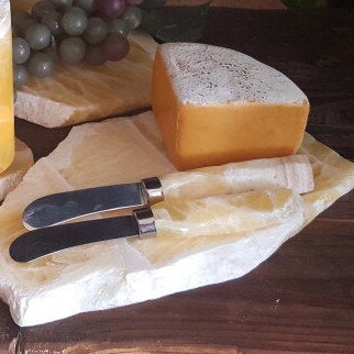Bring elegance and functionality to your cheese-tasting experience and add a touch of natural beauty and sophistication to your serving rituals with an exquisite Luminite Stone sheathed cheese knife.