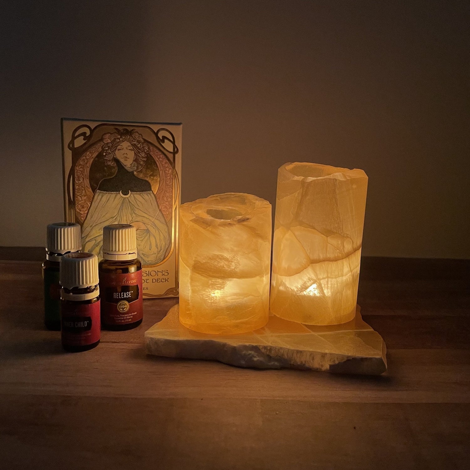 **Be sure to put your candles on something fire resistant, such as a Luminite stone base, a mirror, candle holder, or sconce.