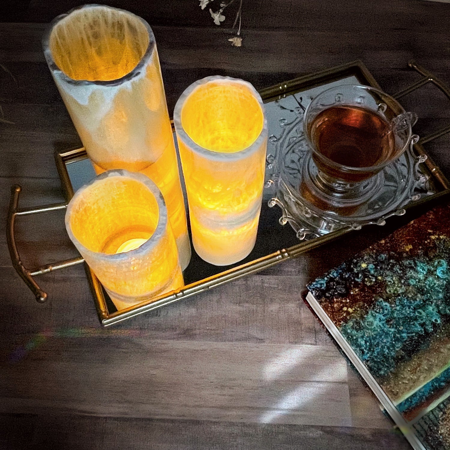 **Be sure to put your candles on something fire resistant, such as a Luminite stone base, a mirror, candle holder, or sconce.